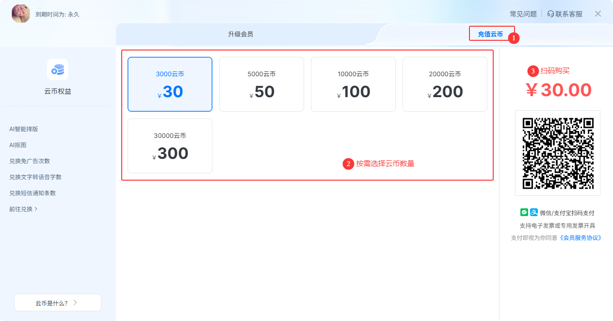三、云幣查看及購買入口