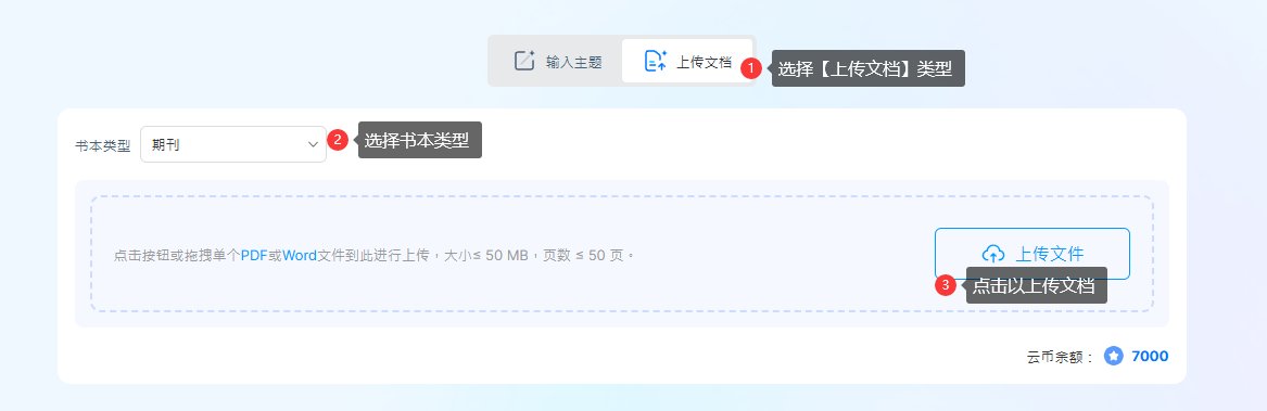 (1) 點(diǎn)擊【上傳文件】→ 選擇【書籍類型】→ 點(diǎn)擊【上傳文件】或?qū)⑽募先肷蟼骺?/p>
