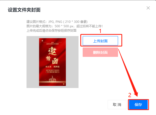 自定義封面:上傳圖片設置文件夾封面。