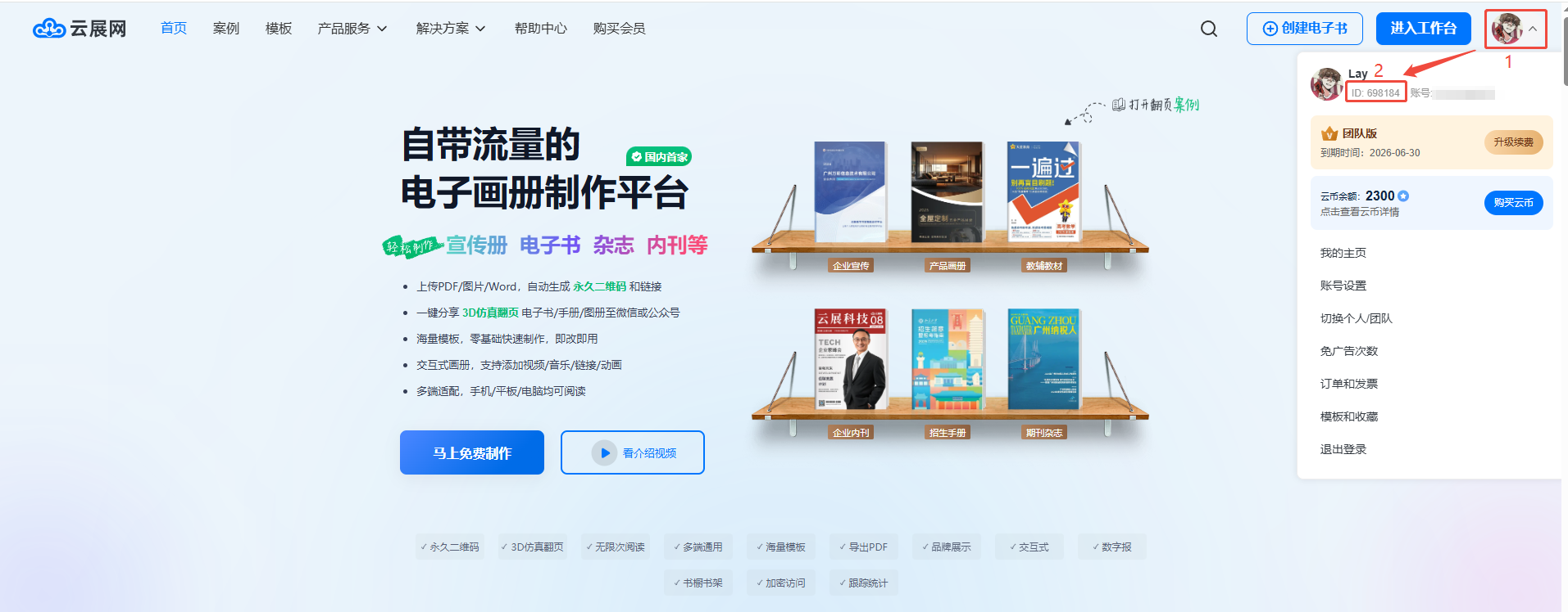 登錄賬號(hào)后,點(diǎn)擊右上角頭像即可查看用戶id。