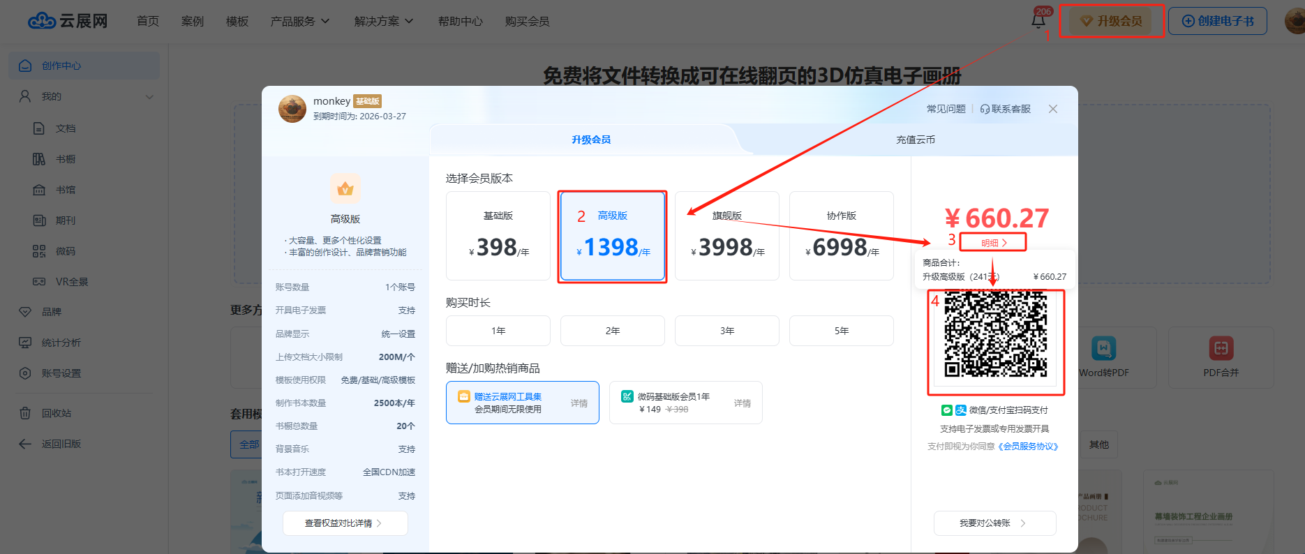 云展網(wǎng)升級會員補(bǔ)差價(jià)公式