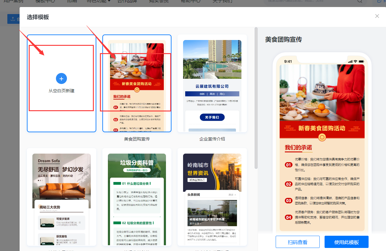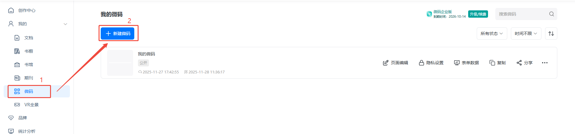 點(diǎn)進(jìn)【微碼】,然后點(diǎn)擊【創(chuàng)建微碼】,選擇【從空白頁(yè)創(chuàng)建】或者選擇【模板套用編輯】。