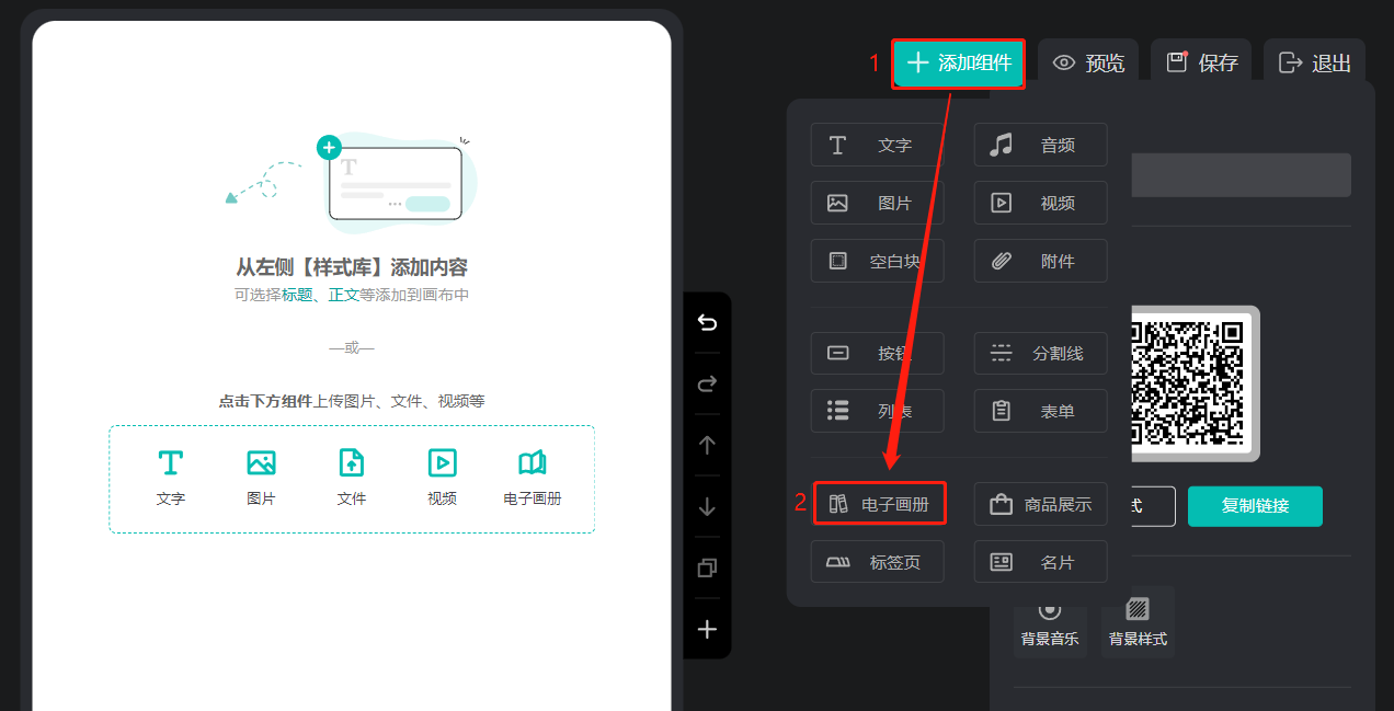 點(diǎn)擊【添加組件】,選擇【電子畫冊(cè)】。